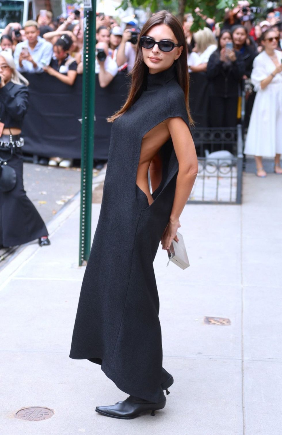 Emily Ratajkowski shkëlqeu në Calvin Klein Fashion Show në New York, duke e çuar trendin e prerjeve të theksuara në një nivel krejtësisht të ri. Autorja e librit My Body zgjodhi një fustan me dizajn nga koleksioni i vjeshtës 2025, i cili binte në sy për hapjen e madhe në pjesën anësore dhe shpinë. Modeli me jakë të lartë i linte të dukshme format e saj elegante, duke krijuar një pamje provokuese dhe plot finesë.
