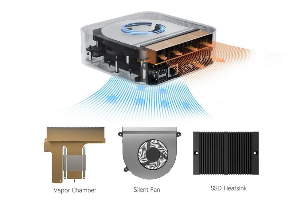 The mini-PC has three-layer cooling - there's a vapor chamber, a radiator and a fan. Beelink estimates it's nearly silent at 32dB. /Telegraph/