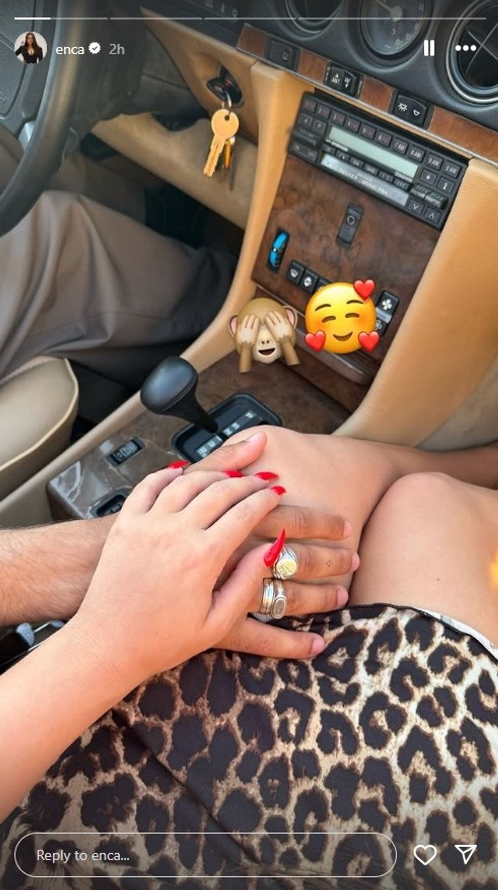 Ajo shihet duke shijuar momente romantike me një person të panjohur, duke shoqëruar foton me disa emoji dashurie, që lënë të kuptohet se ndodhet në një periudhë të lumtur emocionale.