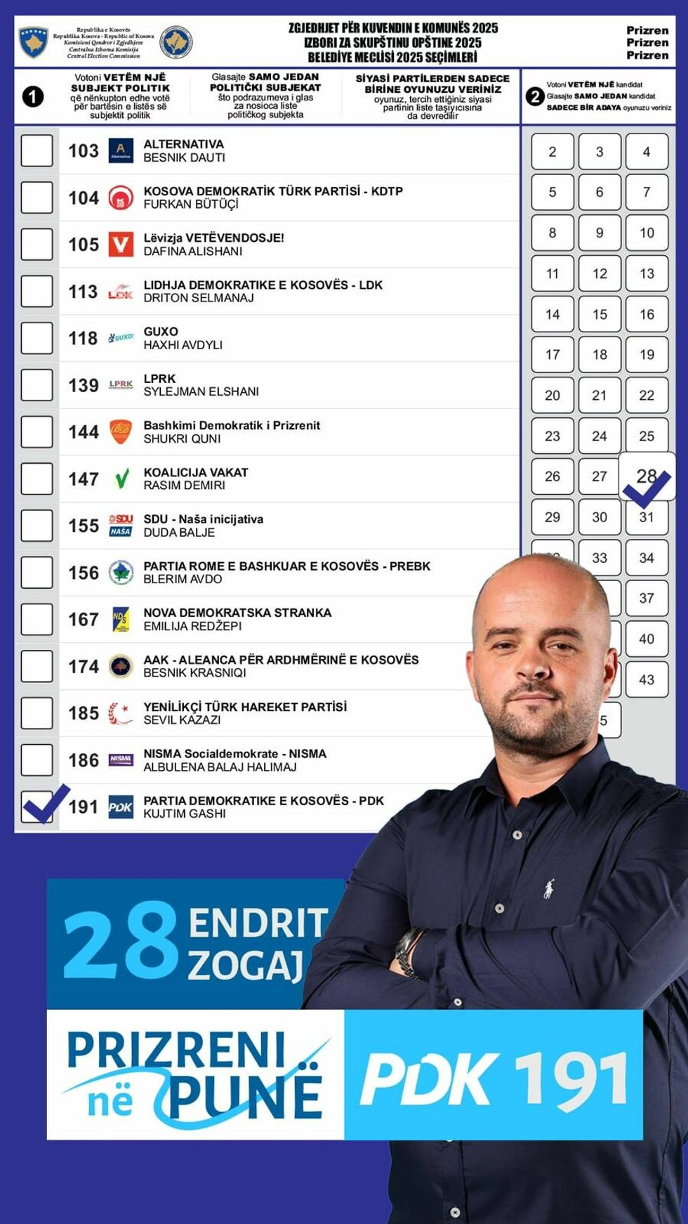 “Voto 191 - Shaqir Totaj për kryetar të Prizrenit...Voto 28 - Endrit Zogaj për Kuvendin Komunal të Prizrenit”, shkruan ai.