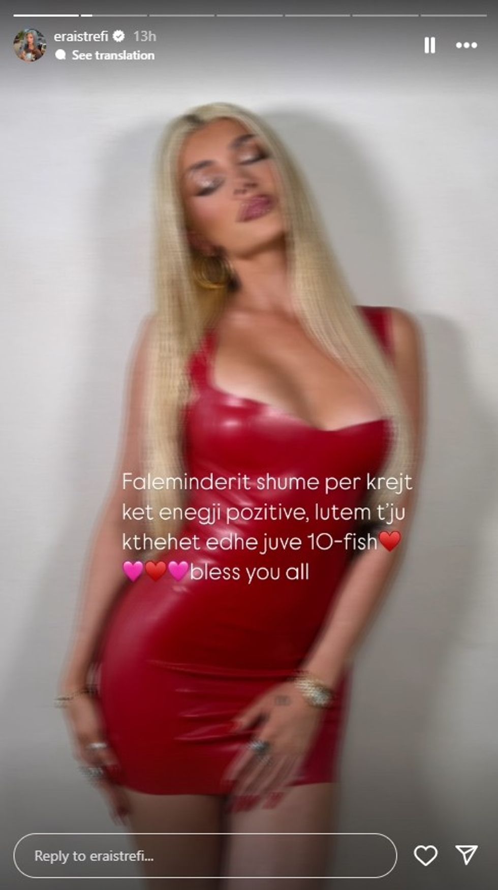 Përmes një postimi në InstaStory, ajo ndau me ndjekësit disa imazhe të ditës së saj të veçantë, duke i falënderuar edhe me stil për mbështetjen.