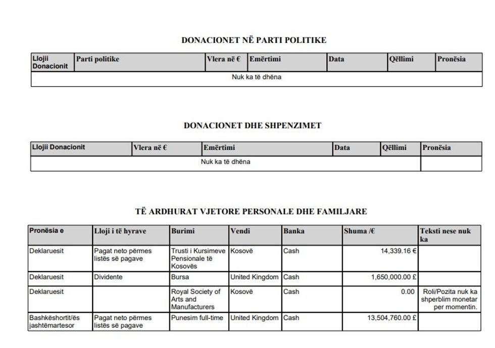 Bajra në deklarimin e pasurisë ka paraqitur 420 mijë funta cash si kursime dhe të ardhura të tij në Kosovë dhe 158 mijë funta cash, si kursime dhe të ardhura, në pronësi të përbashkët. /Telegrafi/