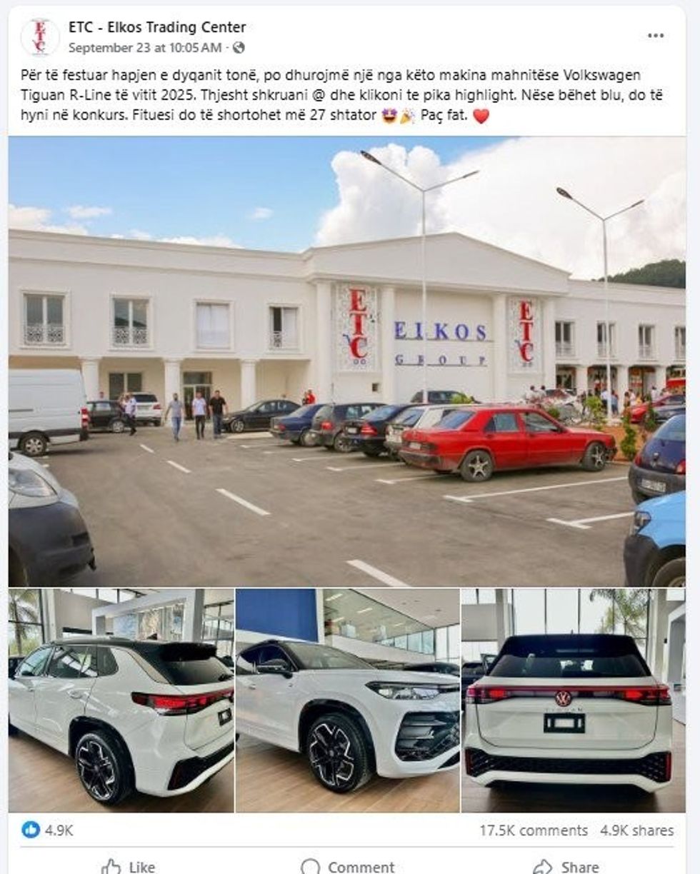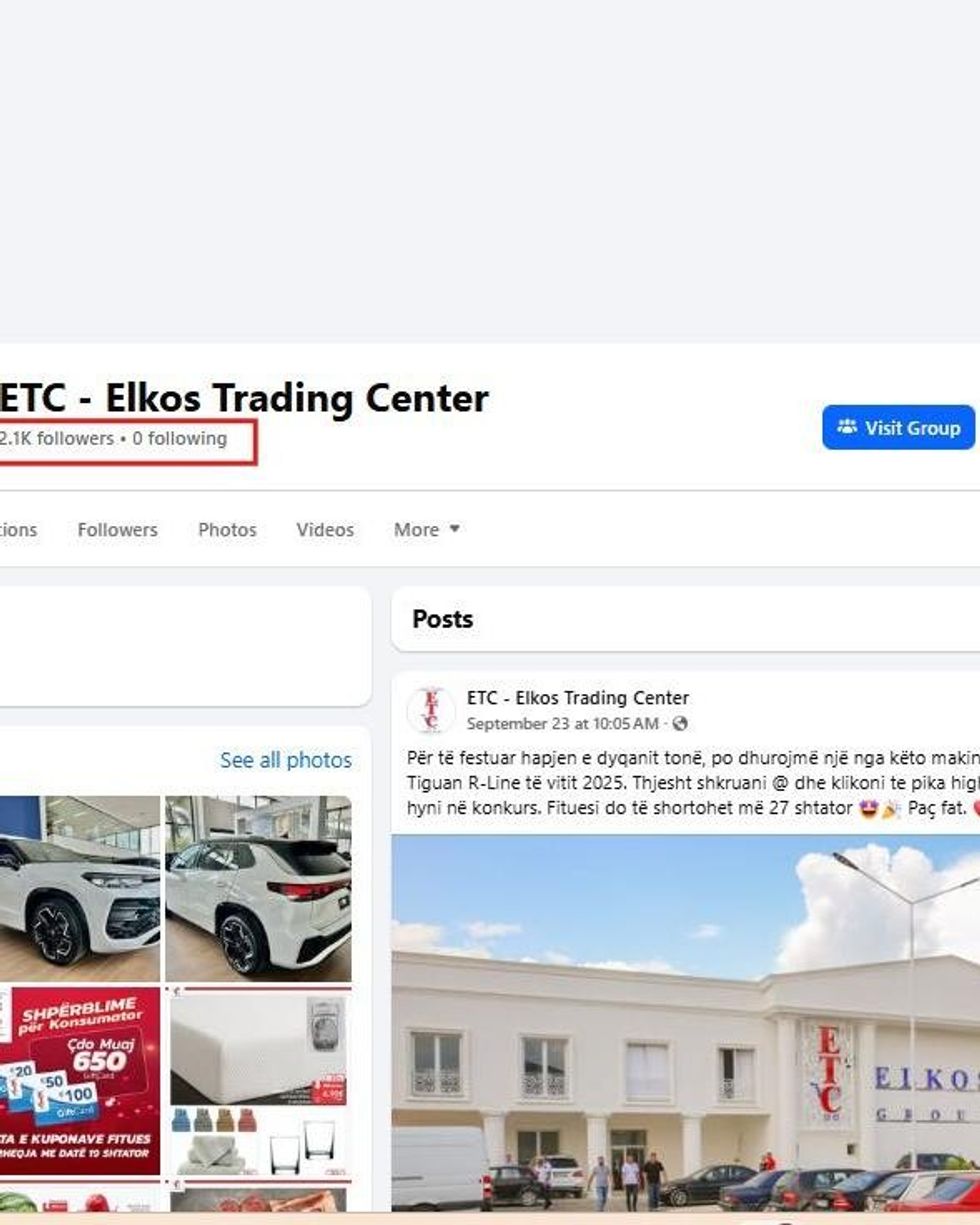 ETC – Elkos Trading Center njofton opinionin publik se në rrjetet sociale është hapur një faqe e rreme me emrin tonë, e cila po shpërndan një lojë shpërblyese të pavërtetë, duke premtuar dhurata në formë veturash.