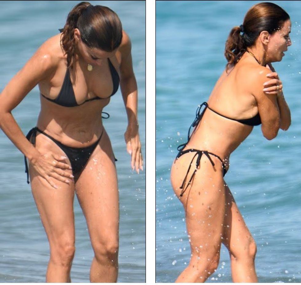 Në moshën 50-vjeçare, Longoria tregoi fizikun e saj të tonifikuar në një bikini të zezë me lidhëse, që vinte në pah format e saj dhe këmbët e gjata, ndërsa shëtiste buzë detit. Flokët i mbante të lidhura bisht, duke u freskuar herë pas here me dallgët e detit.