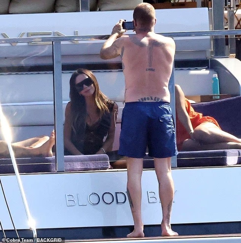 Çifti u shfaq i përqafuar mbi kuvertë, ndërsa David nuk ia hiqte duart gruas së tij, e cila po fotografonte fëmijët në det.