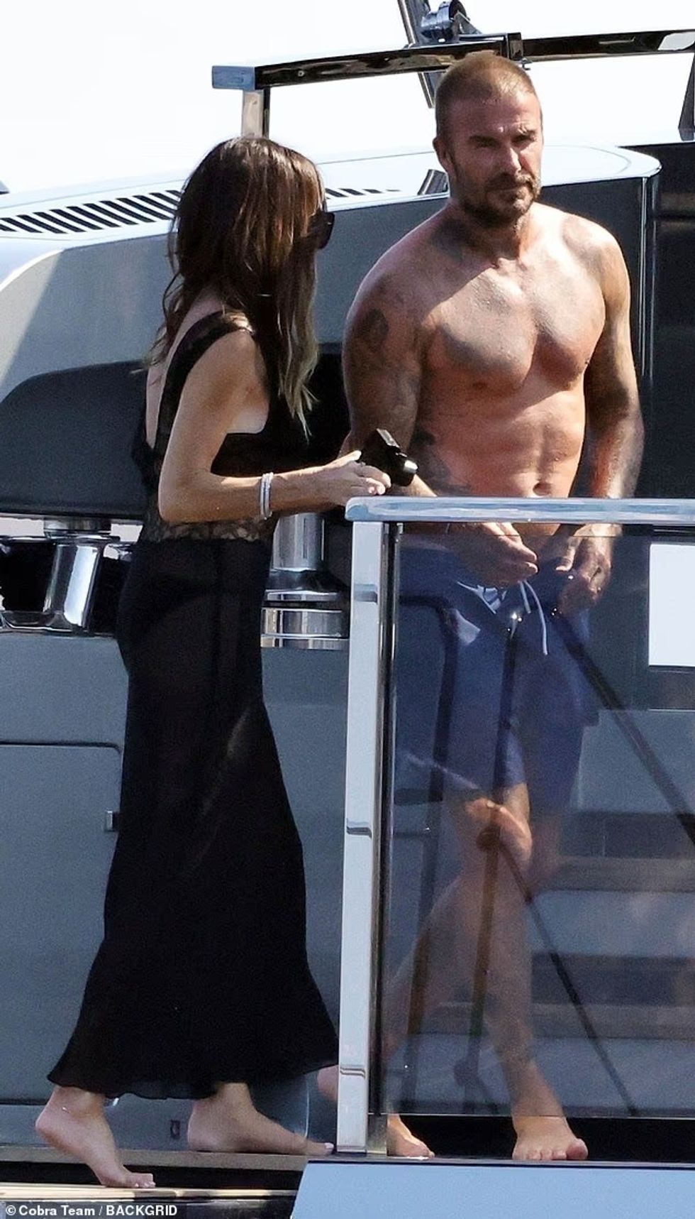 David Beckham është parë sërish duke përqafuar dhe puthur bashkëshorten e tij, Victoria, teksa çifti vazhdon pushimet luksoze buzë bregdetit italian.