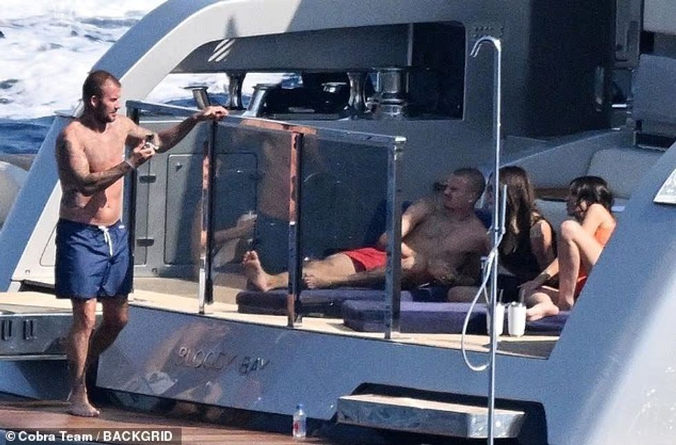 Familja Beckham fotografohen gjatë pushimeve luksoze në jahtin e tyre milionësh në Itali - David fotografohet duke ngacmuar në të pasme Victorian