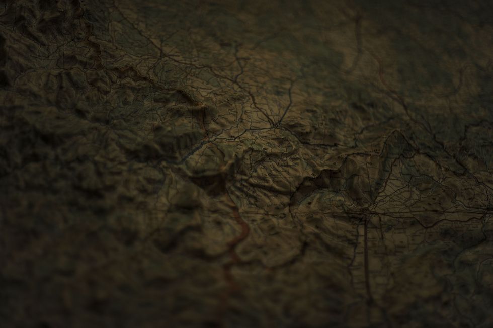 Një hartë e Kosovës në Prishtinë. Vijat në hartë m’i kujtuan shtigjet që njerëzit u detyruan t’i ndiqnin gjatë luftës, kufijtë që i kaluan dhe vendet ku shumë prej tyre u zhdukën.