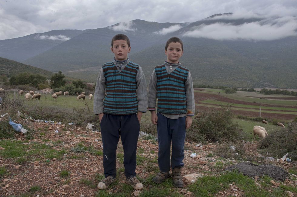 Dy vëllezër binjakë ruajnë delet në Kukës, Shqipëri, në kufi me Kosovën, më 16 tetor 2010.Gjatë luftës në Kosovë, rreth 450,000 refugjatë nga Kosova e kaluan kufirin dhe u strehuan në kampe në dhe përreth Kukësit.