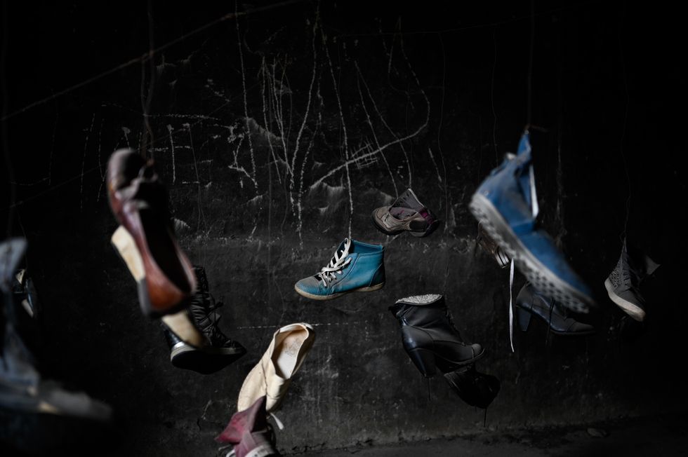 Një instalacion në Prishtinë, më 17 mars 2021, paraqet këpucë fëmijësh të varura në tela pranë një shtëpie që ishte shndërruar në shkollë. Ndër goditjet e para që regjimi i Slobodan Milosheviqit u dha shqiptarëve të Kosovës në vitet 1990 ishte përpjekja për të shkatërruar arsimin shqip, duke i dëbuar ata nga shkollat e mesme dhe objektet universitare. Në atë kohë, shumë shqiptarë ndërmorën një veprim të rrezikshëm: i shndërruan shtëpitë e tyre në shkolla, të cilat më pas u bënë objekt i sulmeve serbe.