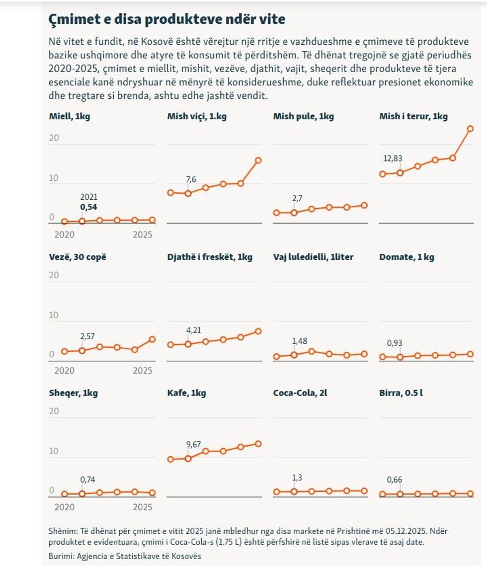 “Çdo ditë dal në dyqane dhe i hulumtoj çmimet. Një kilogram mish i terur është 26.00 euro, ndërsa mishi i kuq i viçit ka arritur në 16.00 euro. Kjo është jashtë normales”, thotë ky banor i Prishtinës për Radion Evropa e Lirë.