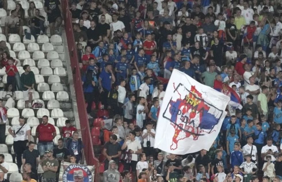 Gjithashtu, gjatë takimit u shpalosën flamuj të Serbisë mbi hartën e Kosovës, ndërsa kishte thirrje raciste ndaj mysafirëve.