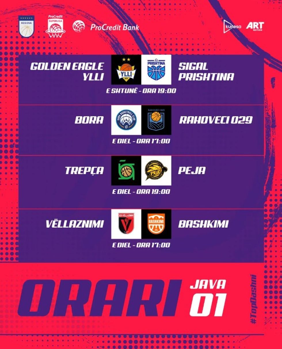Java e parë mbyllet me derbin ndërmjet skuadrave rivale, Trepçës dhe Pejës, dy skuadra me traditë në basketbollin e Kosovës, ku synojnë të nisin edicionin e ri me fitore.