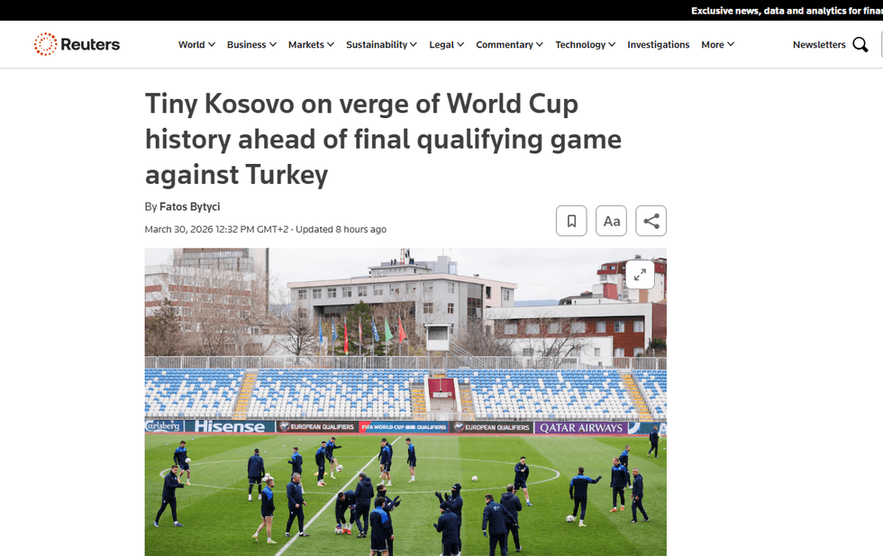 Sipas agjencisë ndërkombëtare të lajmeve Reuters, “Kosova e vogël kërkon historinë e Kupës së Botës me ndeshjen vendimtare kundër Turqisë”.