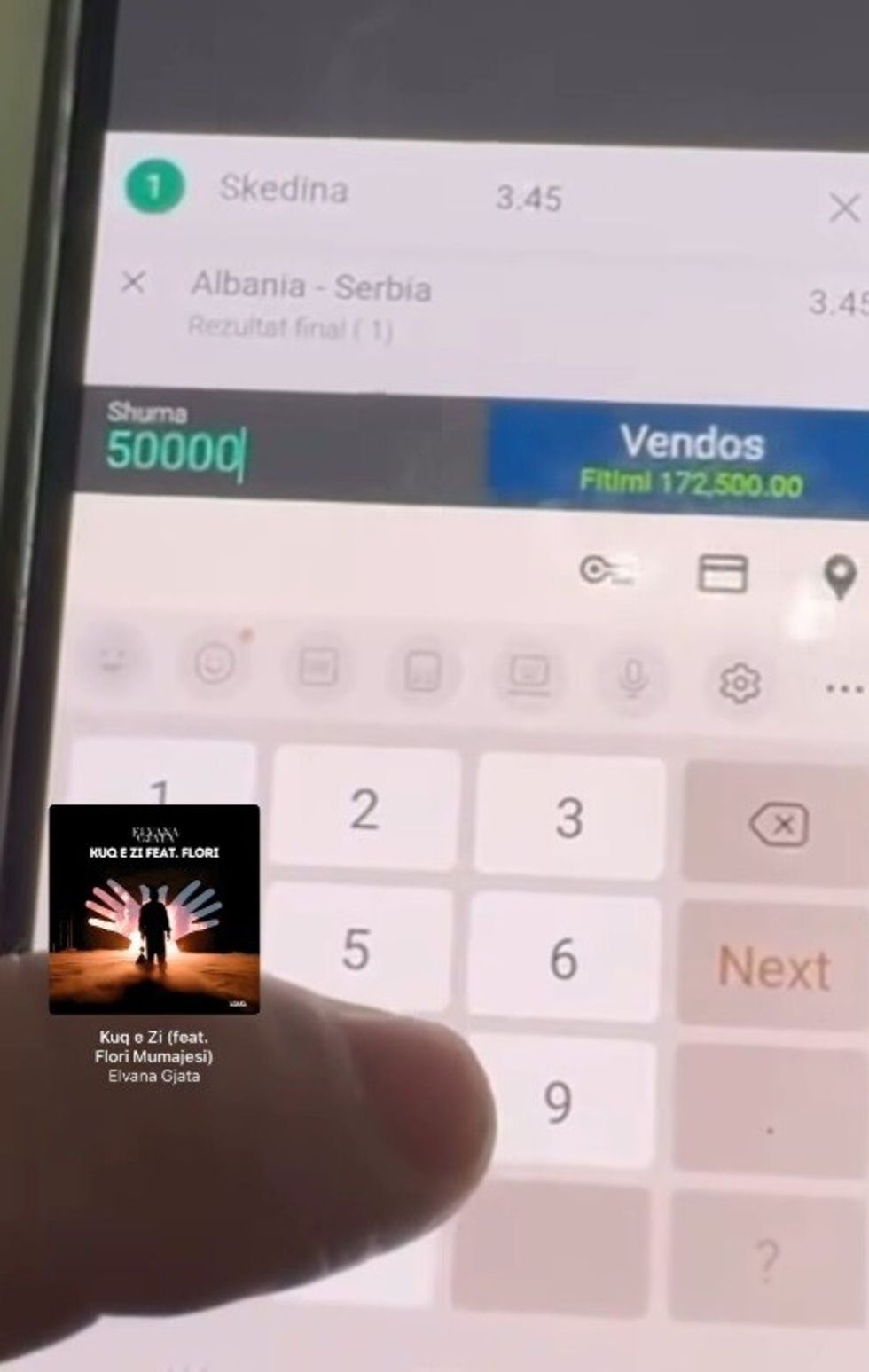 Në një video që po qarkullon në TikTok dhe Instagram, Finem shihet duke vendosur një bast prej 50,000 lekësh për fitoren e Shqipërisë, me një kuotë 3.45 që, në rast fitoreje të kuqezinjve, do t’i sillte atij 172,500 lekë fitim. Në përshkrimet që shoqërojnë videon pretendohet se bëhet fjalë për 50 mijë euro, por bazuar në shifrat dhe koeficientin, duket se bëhet fjalë për monedhën lekë shqiptare – ndonëse kjo mbetet e pasaktësuar plotësisht.
