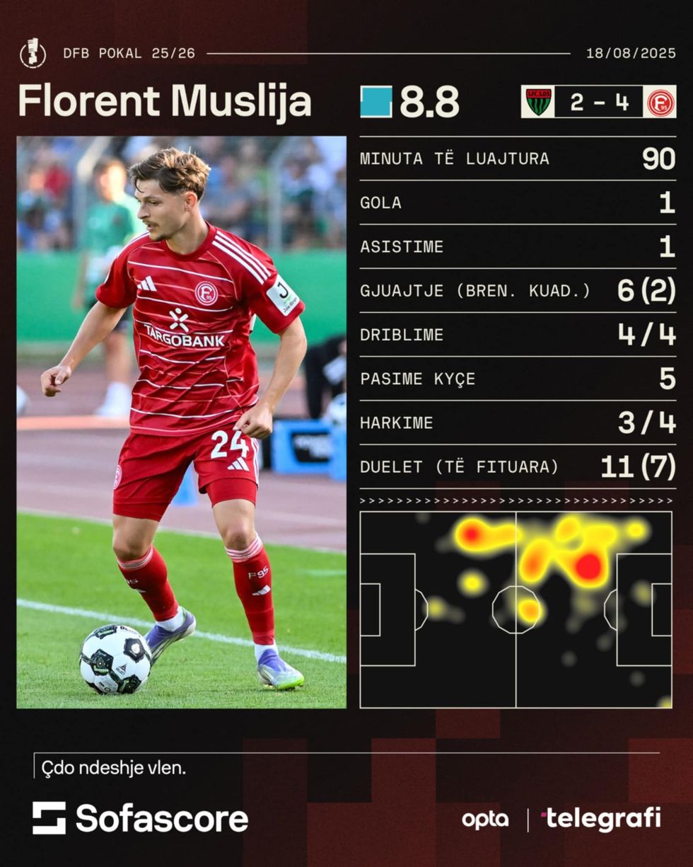 Fortuna Dusseldorf ka shënuar fitore ndaj Schweinfurt 05 në raundin e parë të DFB Pokal me Florent Muslijën që zhvilloi një ndeshje të shkëlqyer.