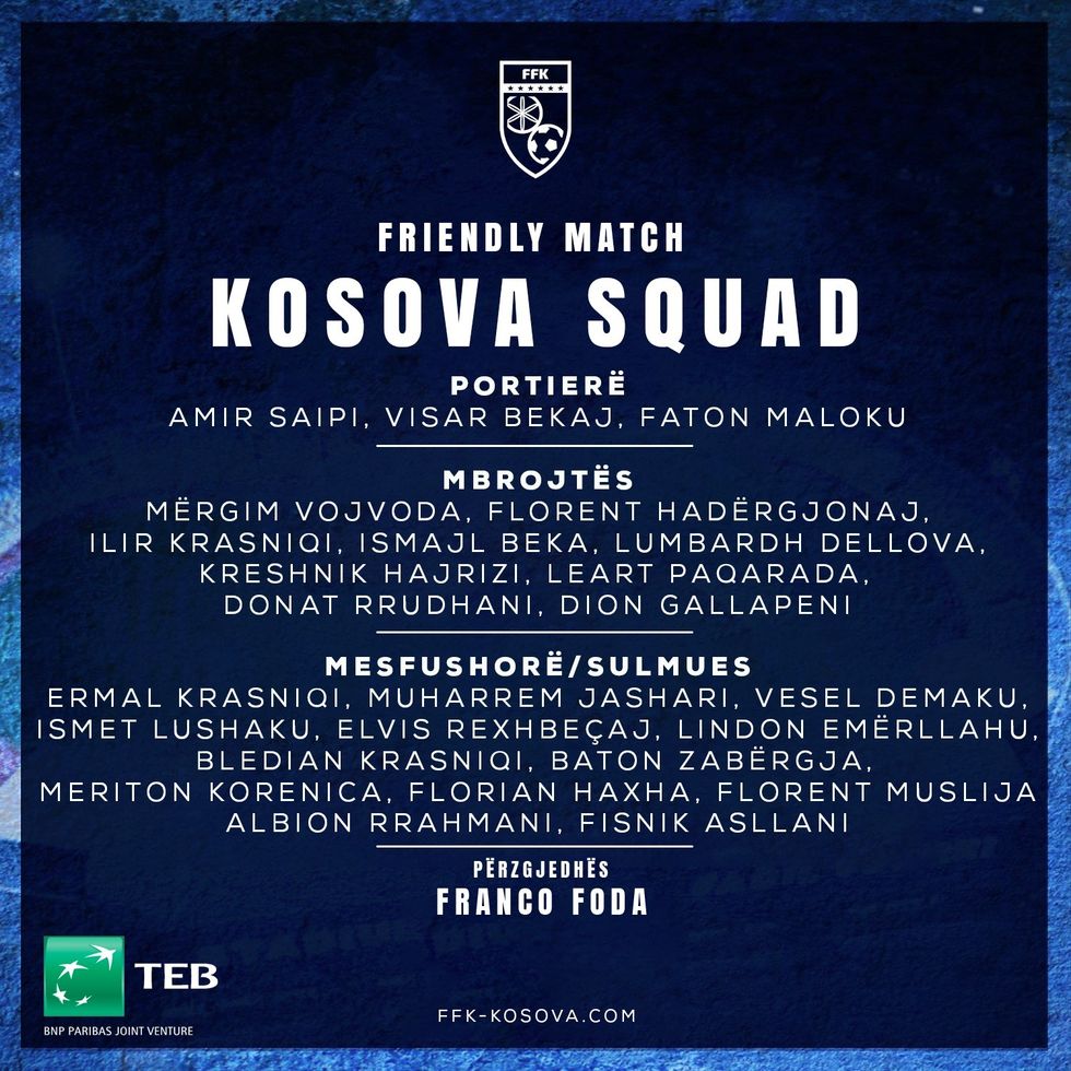 Në këtë listë mungojnë senatorë si Arijanet Muric, Amir Rrahmani, Edon Zhegrova, Valon Berisha, Milot Rashica dhe Vedat Muriqi, ndërsa janë ftuar emra të rinj si Bledian Krasniqi dhe Florian Haxha.
