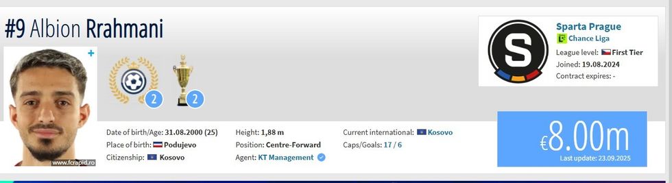 Nga pesë milionë euro sa vlente më parë, Rrahmani tani ka vlerën 8 milionë euro në Transfermarkt.