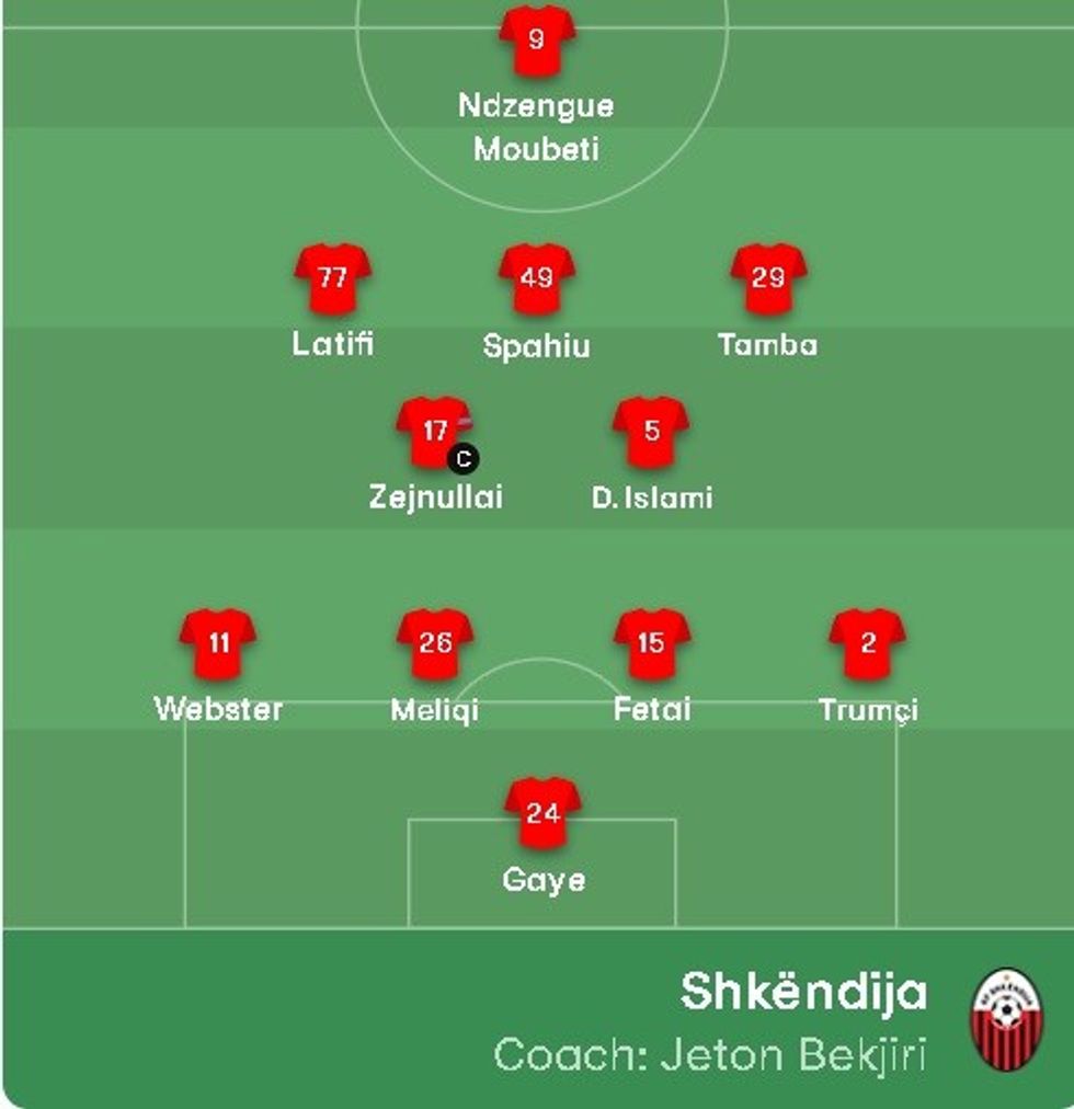 Trajneri Jeton Beqiri për këtë ndeshje ka vendosur të luajë në portë me Gaye, ndërsa mbrojtja përbëhet nga Meliqi, Trumci, Fetai, dhe Webster. Në mesfushë luajnë, Zejnullai dhe Islami.