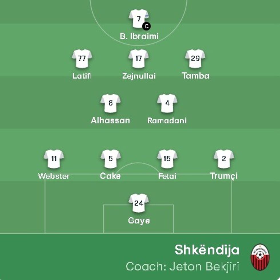 Trajneri Jeton Beqiri për këtë ndeshje ka vendosur të luajë në portë me Baboucarr Gaye, ndërsa mbrojtja përbëhet nga: Aleksander Trumçi, Klisman Cake, Ronaldo Webster dhe Imran Fetai.