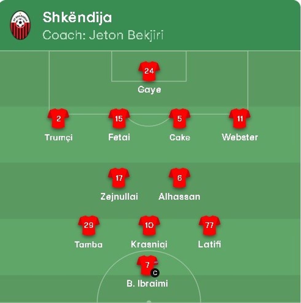 Trajneri Jeton Beqiri për këtë ndeshje ka vendosur të luajë në portë me Gaye, ndërsa mbrojtja përbëhet nga Trumci, Fetai, Cake dhe Webster.