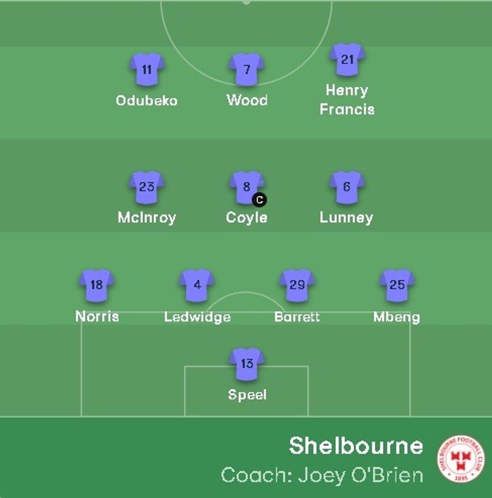 Në anën tjetër, te Shelbourne trajneri Joey O'Brien në sulm ka zgjedhur të luajë me Odubeko, Henry-Francis dhe golashënuesi më i mirë i ekipit Wood.