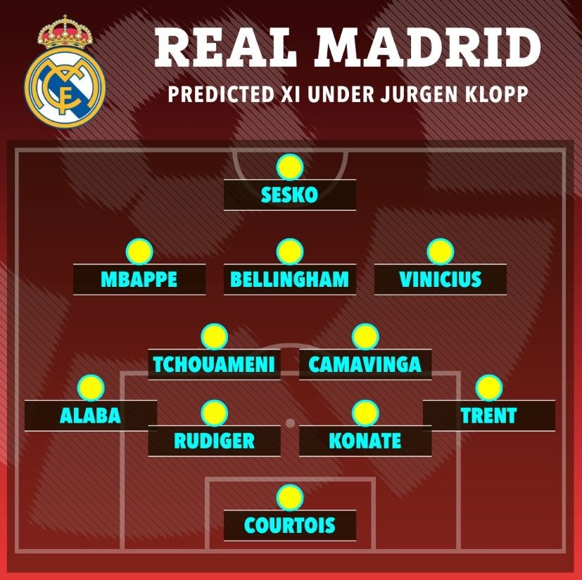 Prandaj, nëse Klopp transferohet në Madrid, atëherë kampionët spanjollë mund të kenë Trent në krahun e djathtë me David Alaba në anën tjetër, ndërsa Konate mund të bashkohet me Antonio Rudiger në qendër të mbrojtës përpara portierit Thibaut Courtois.