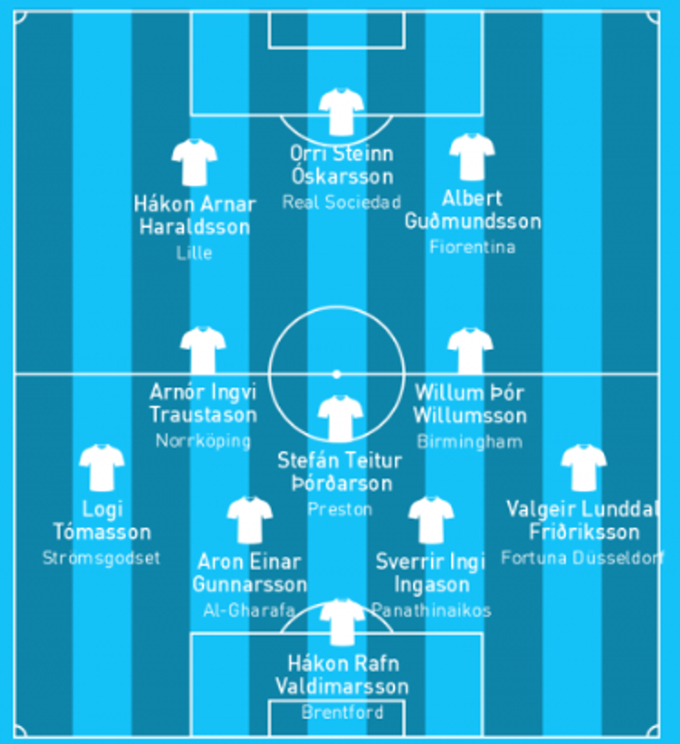 Sipas mediave islandeze, Gunnlaugsson synon të përdorë një formacion 4-3-3, me Hakon Rafn Valdimarsson si portier kryesor.