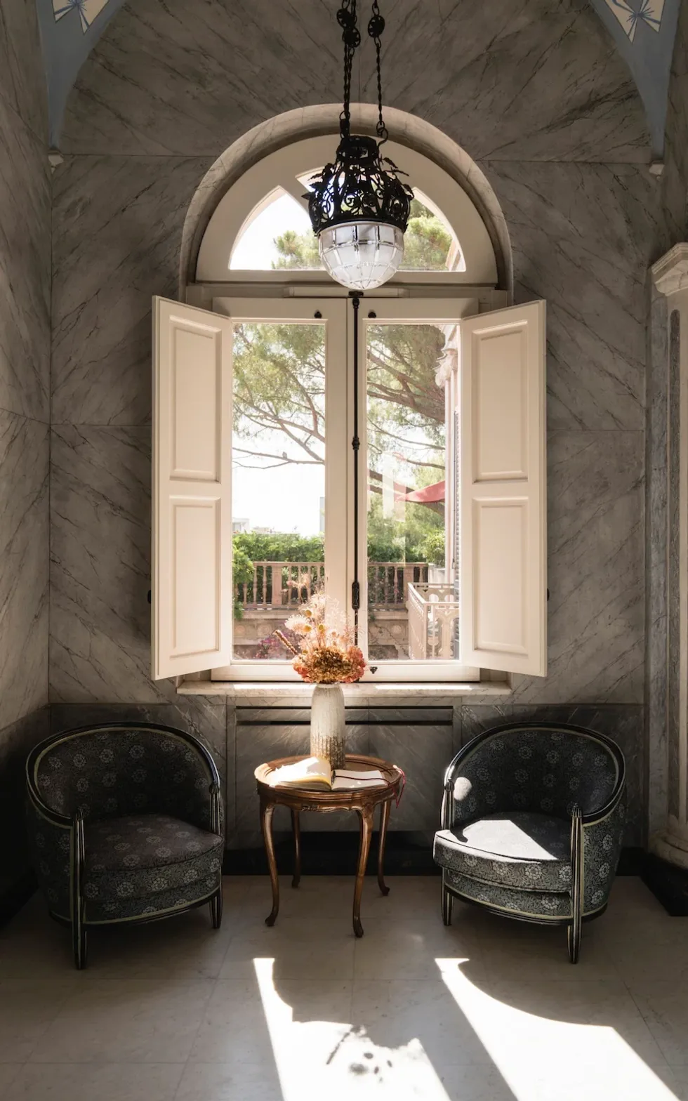 Coppola bleu “Palazzo Margherita”-n nga brezi i katërt i familjes Margherita, të cilët bënë pasuri duke eksportuar vaj ulliri. Ai e donte për shtëpi, por e dinte se do të mungonte shpesh, ndaj kishte kuptim ta shndërronte në një hotel me nëntë dhoma. Ai kontraktoi dizajnerin e famshëm francez të interierit, Jacques Grange. “Ideja ishte të ruhej një patinë e moshës,” thotë Coppola, duke treguar murin e rrënuar në mënyrë romantike në oborr. “Kjo është dy herë më e vështirë se një restaurim.”