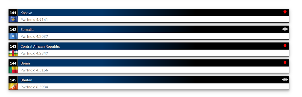 Sipas këtij indeksi Forca e Sigurisë së Kosovës (FSK) renditet e 141 nga 145 vende që janë të përfshira në këtë listë.