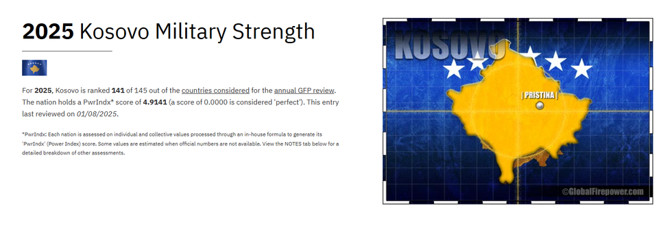 Global Fierpower i cili merret me analiza ushtarake, ka publikuar së fundmi indeksin e fuqisë ushtarake për vitin 2025, për vende të ndryshme përfshirë edhe vendet e Ballkanit Perëndimor.