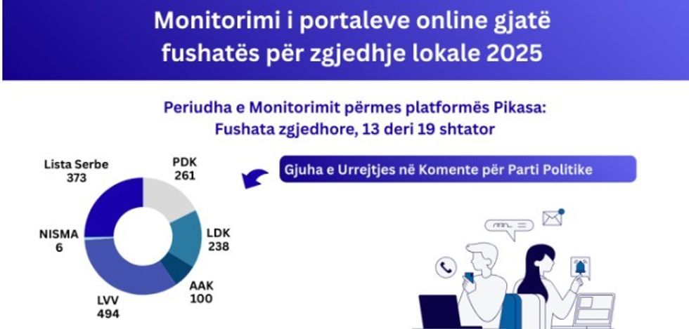 Në njoftim thuhet se nga të dhënat e grumbulluara, më së shumti gjuhë urrejtjeje në komente ndaj partive politike është identifikuar ndaj LVV-së me 494 raste, e ndjekur nga Lista Serbe me 373 dhe PDK me 261.