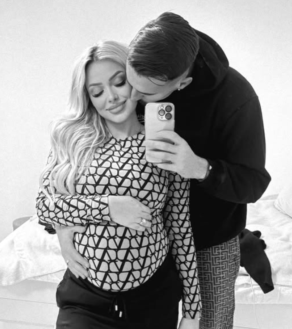 Ajo ndau një fotografi të ëmbël duke shprehur lumturinë e tyre me fjalët: "Dy zemra, një dashuri dhe së shpejti, një engjëll i vogël që të na shërojë”.