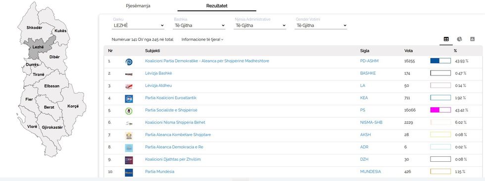 Gara mbetet e hapur ndërsa numërimi vazhdon, dhe përqindjet mund të lëvizin në varësi të rezultatit në qendrat e mbetura./Telegrafi/