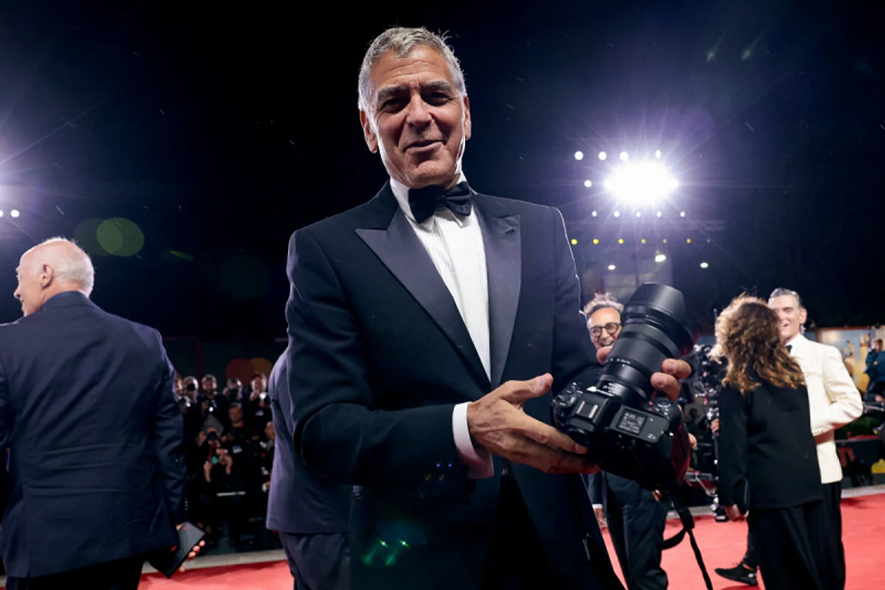 Në një moment, Clooney "vodhi" aparatin e një prej fotografëve, për të bërë fotografi të kolegut të tij aktor Adam Sandler.