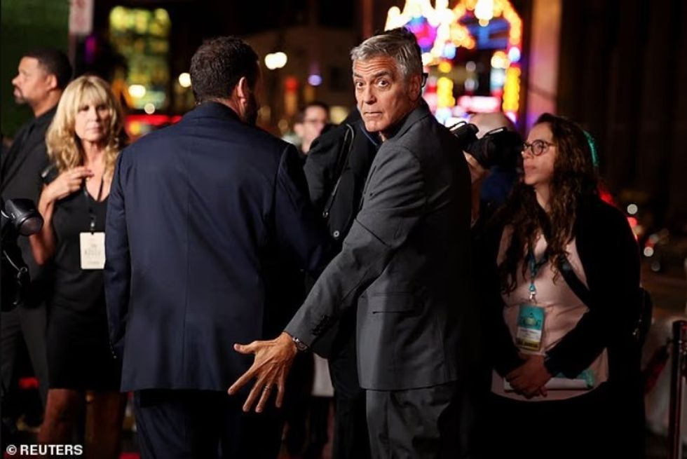 George Clooney vendos me shaka dorën mbi të pasmet e Adam Sandler ndërsa bashkohen me Riley Keough në premierën e "Jay Kelly"