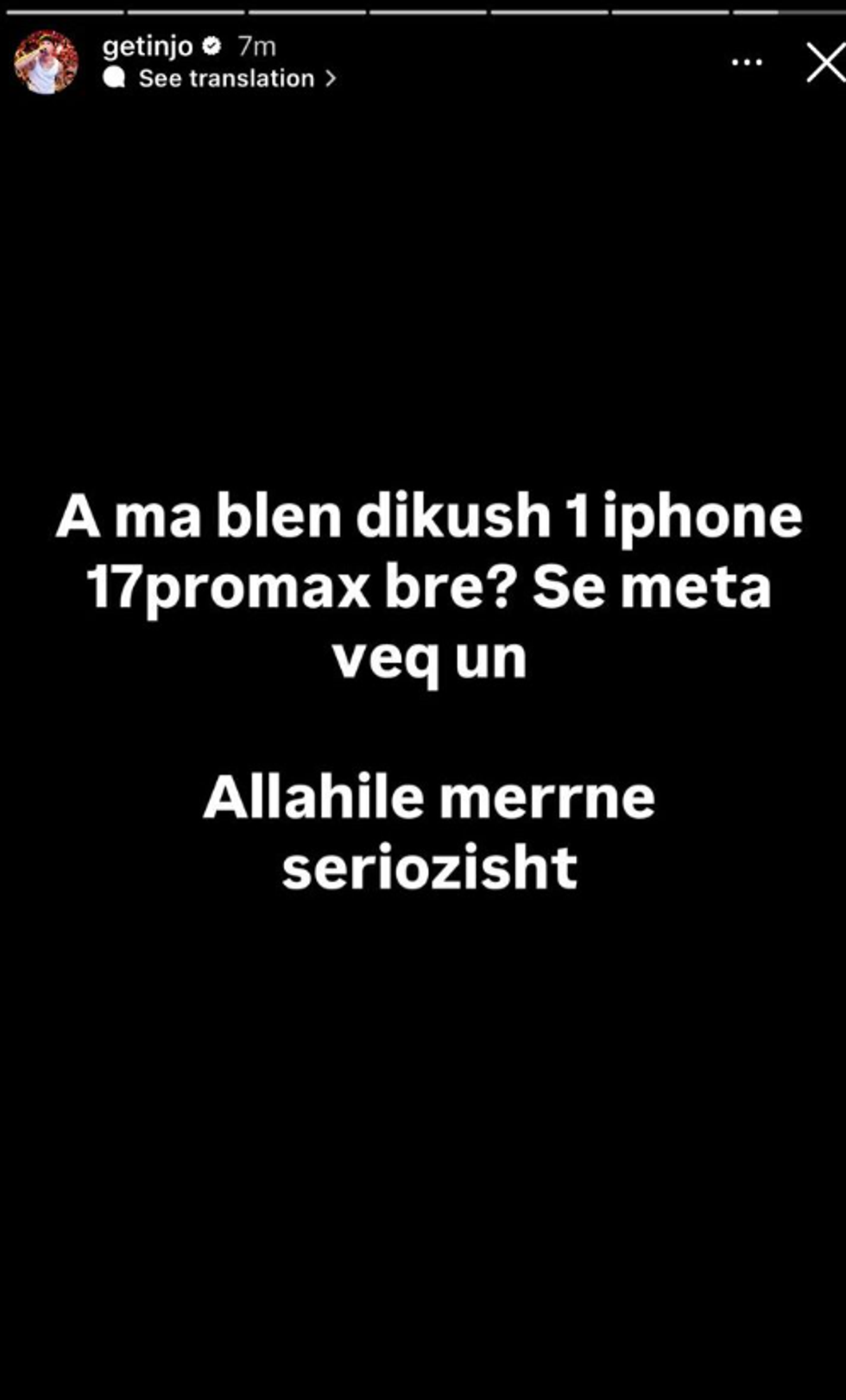 Getinjo me kërkesë për ndjekësit: Më blini një Iphone 17 Pro Max, vetëm unë kam mbetur