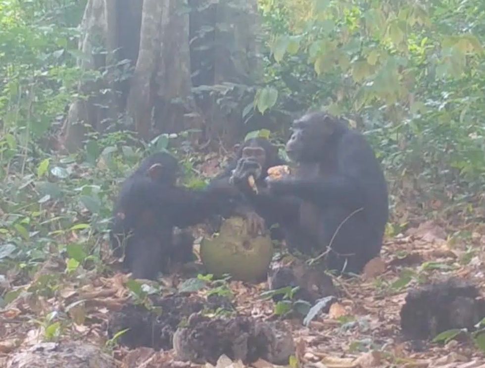 Duke përdorur kamera të aktivizuara me lëvizje, studiuesit filmuan shimpanzetë duke ndarë frutat e fermentuara të mëdha, të dendura dhe fibroze në disa raste.
