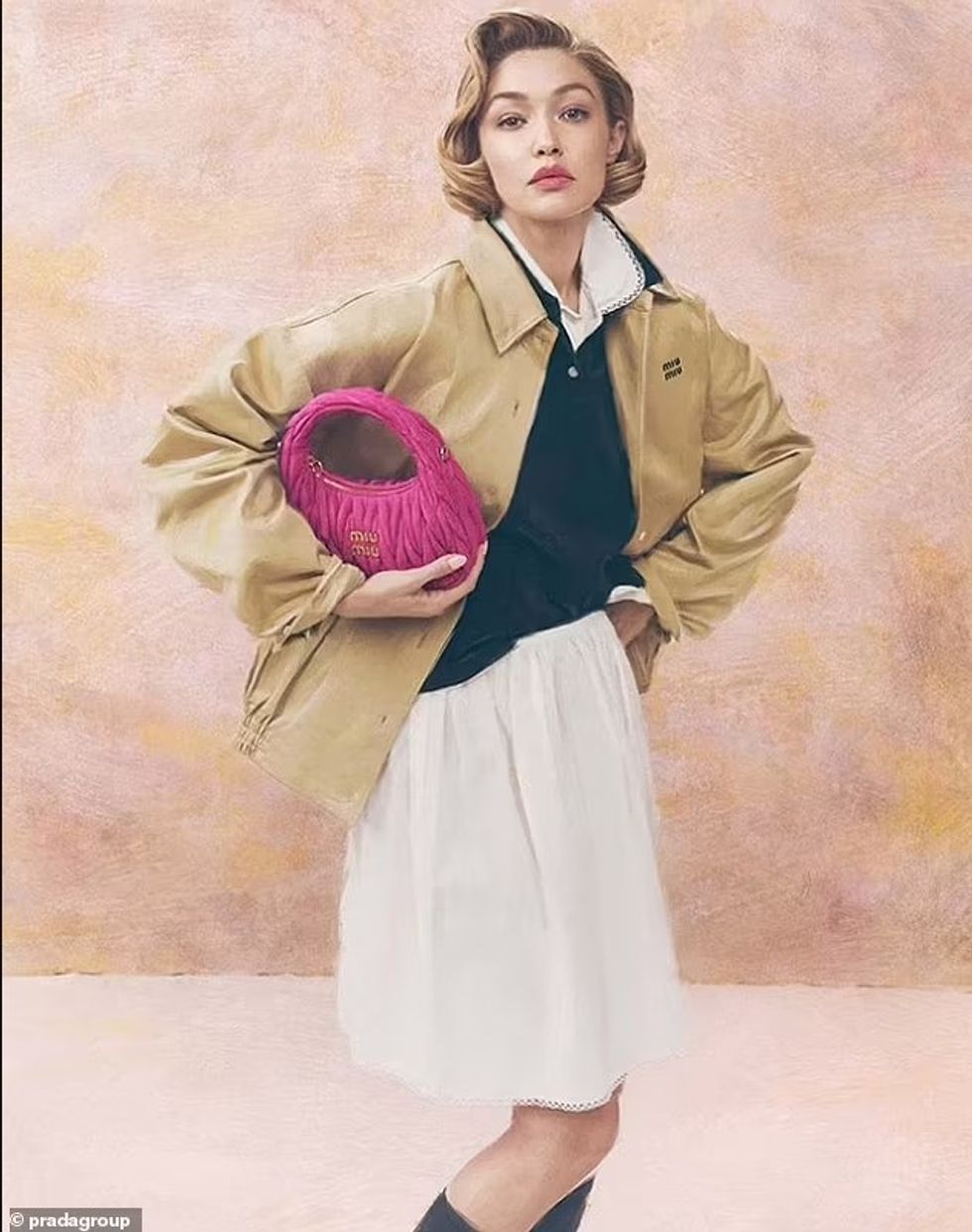Modelja 29-vjeçare Gigi Hadid shkëlqen në fushatën më të re të Miu Miu për koleksionin Pranverë/Verë 2025.