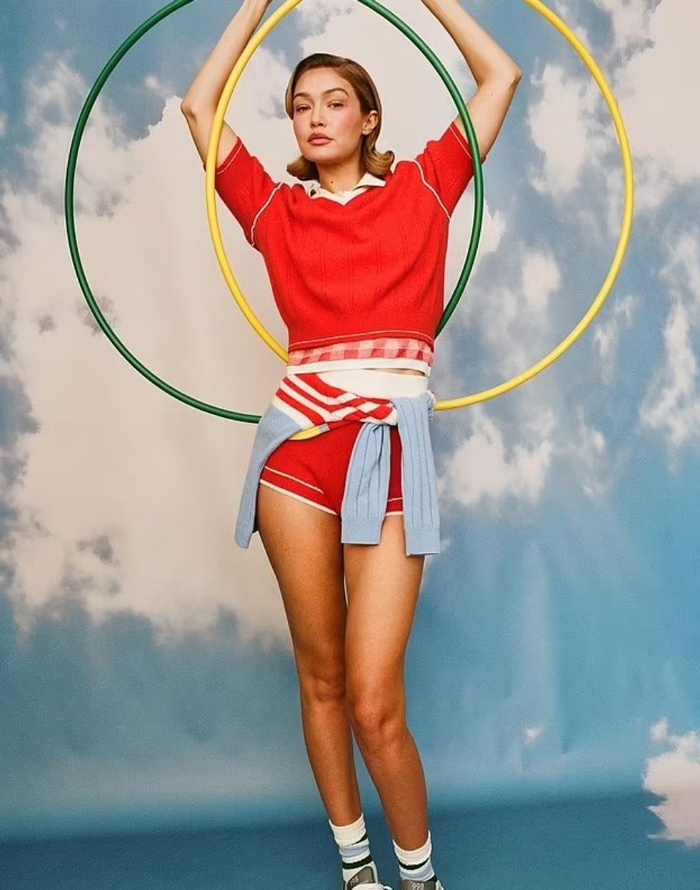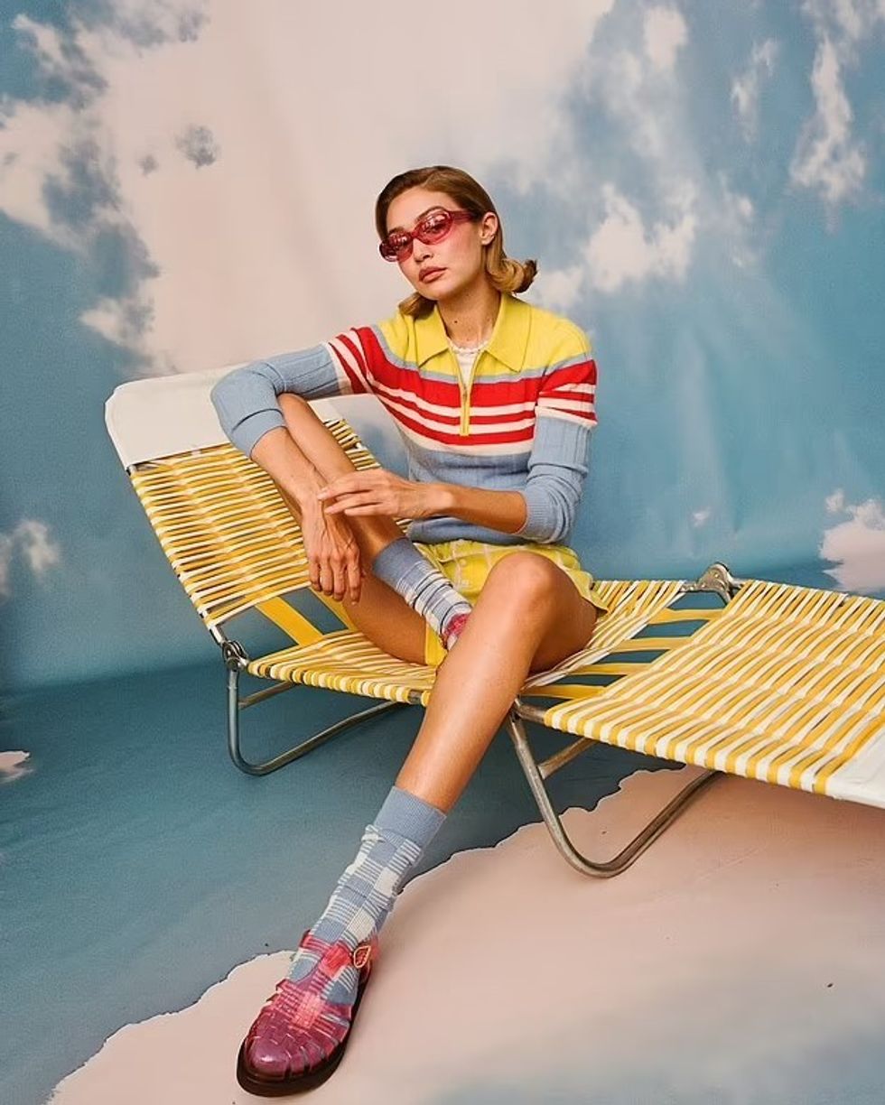 Modelja e njohur, Gigi Hadid, mahniti me format e saj në fushatën shumëngjyrëshe të Havaianas, ku pozoi me bikini rozë dhe pantallona të shkurta.