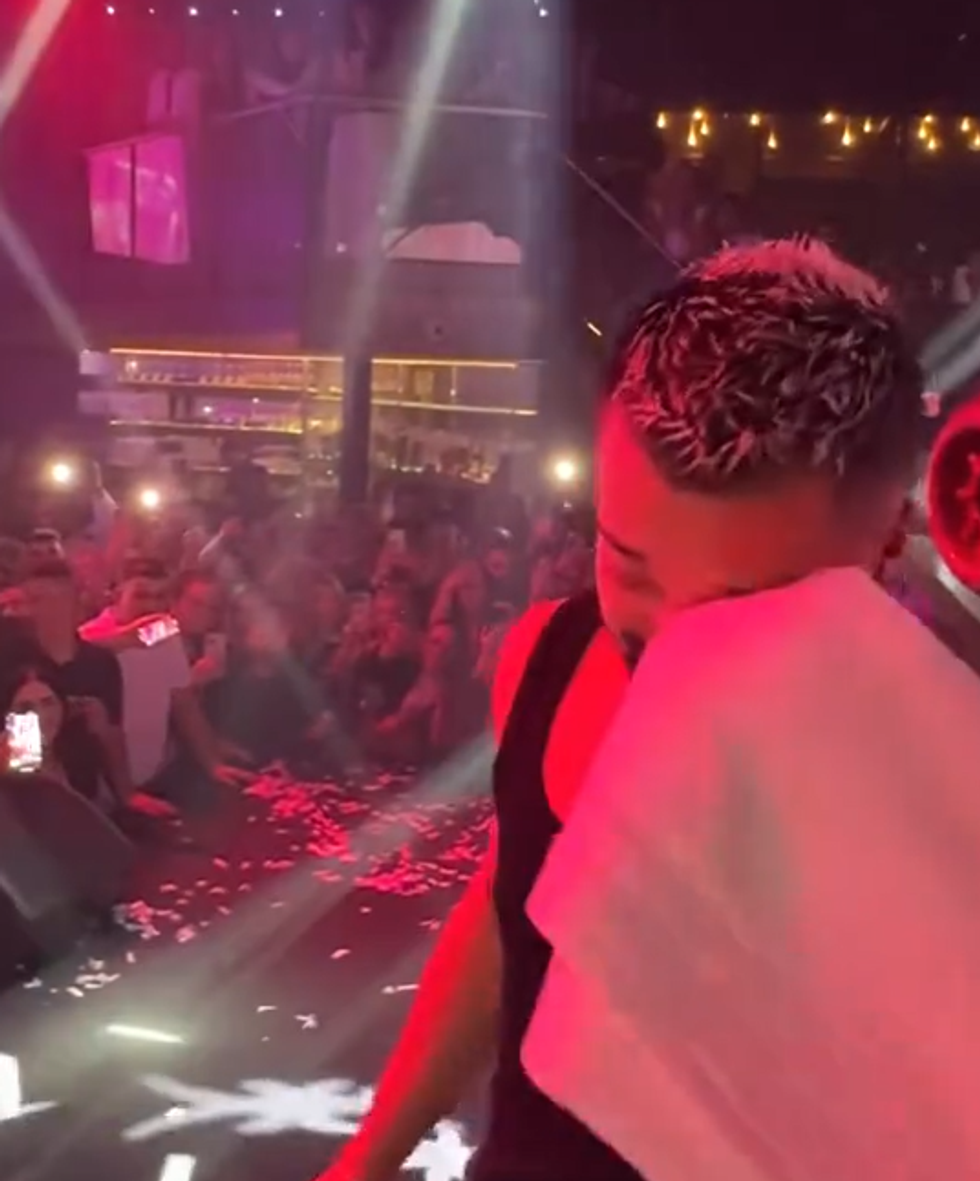 Ai u shfaq duke fshirë lotët e më pas duke vazhduar me këngën e tij të radhës që do ta këndonte.
