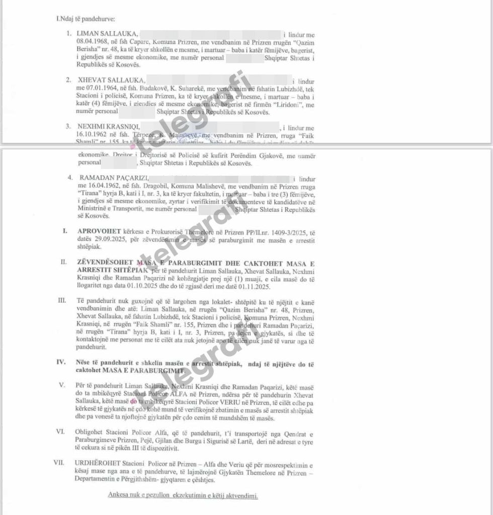 Telegrafi ka sigruar vendimin i cili është marrë më 29 shtator 2025.