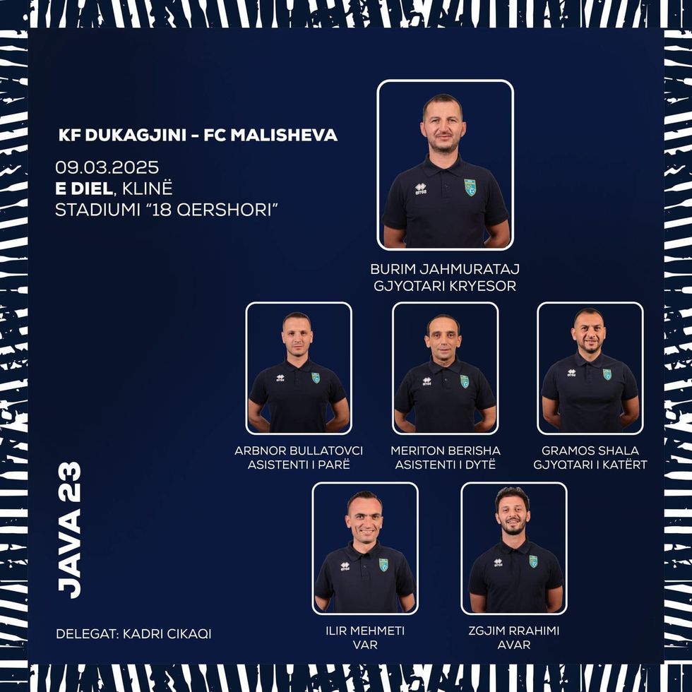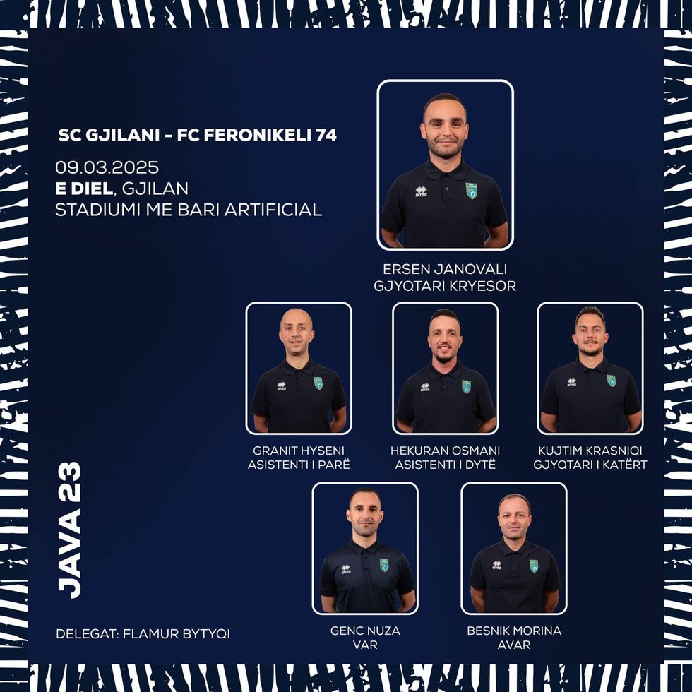 Sfida që do të zhvillohet në Klinë mes Dukagjinit dhe Malishevës gjykohet nga Burim Jahmurataj, ndërsa në duelin mes Gjilanit dhe Feronikelit '74 gjyqtar kryesor është Ersen Janovali. /Telegrafi/