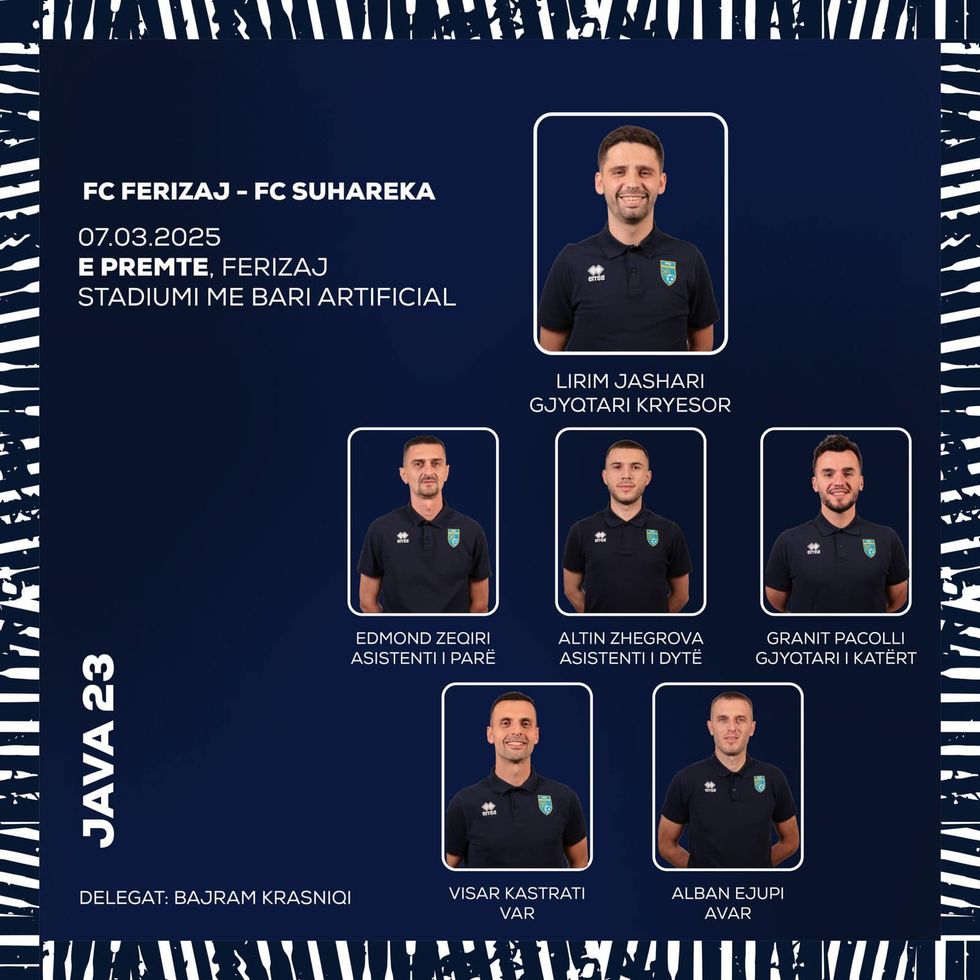 Në ndeshjen hapëse mes Ferizajt dhe Suharekës, drejtësinë do ta ndajë Lirim Jashari.
