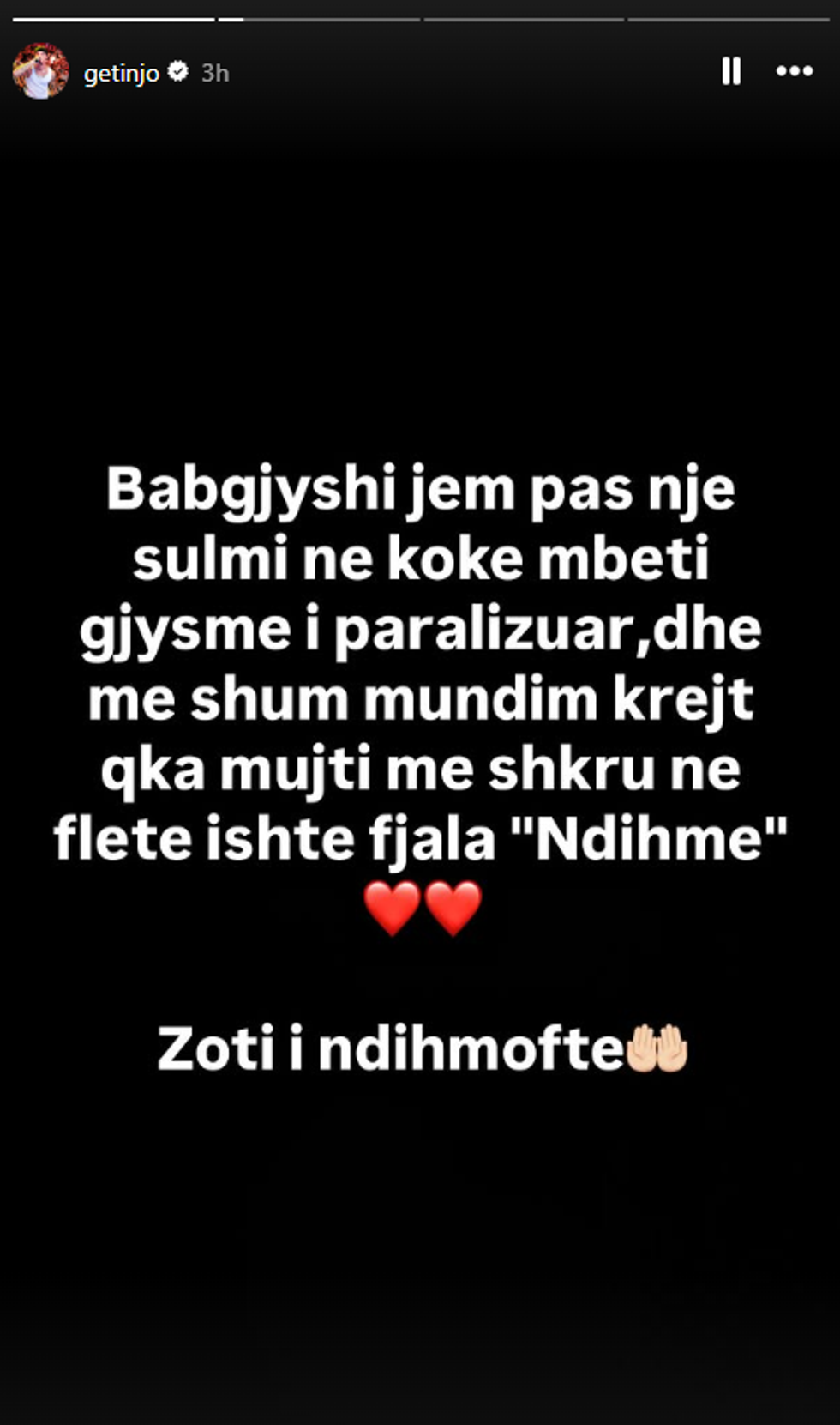“Zoti i ndihmoftë”, përfundon ai, duke shtuar edhe dy zemra të kuqe në shenjë dashurie e dhimbjeje.