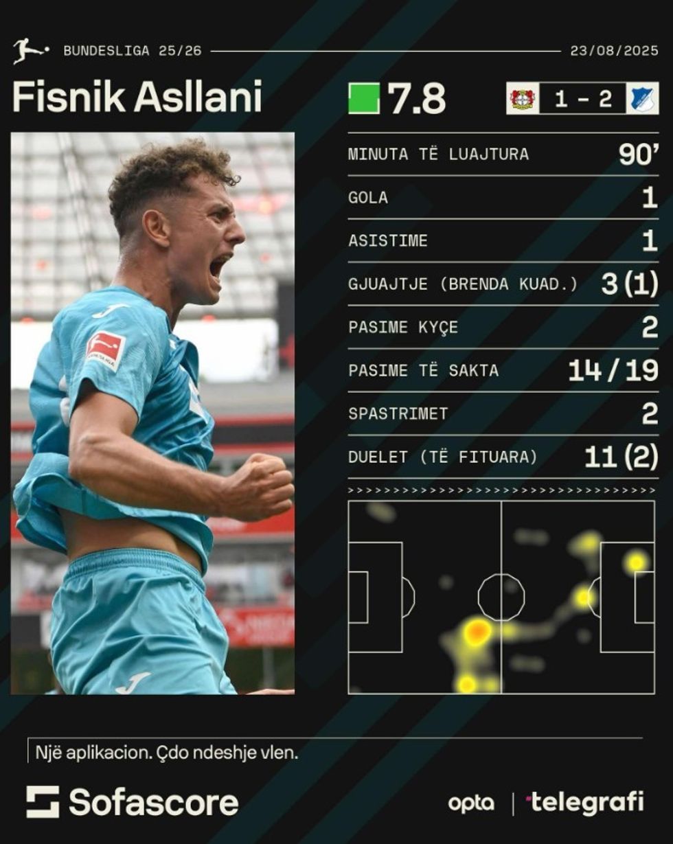 Gol dhe asistim – Fisnik Asllani shpallet lojtari më i mirë i ndeshjes ndaj Bayer Leverkusenit