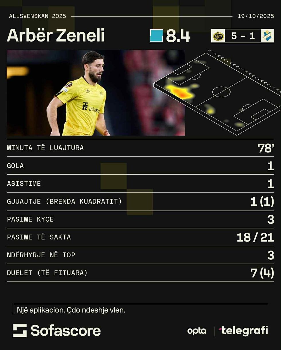 “SofaScore” e vlerësoi Zenelin me notën 8.4, e dyta më e larta në ndeshje pas golashënuesit të dy golave Silverholt. Anësori ndër të tjera kishte 86 për qind saktësi në pasime (18 nga 21 që tentoi), kompletoi tre pasime kyçe dhe krijoi një shans të madh.
