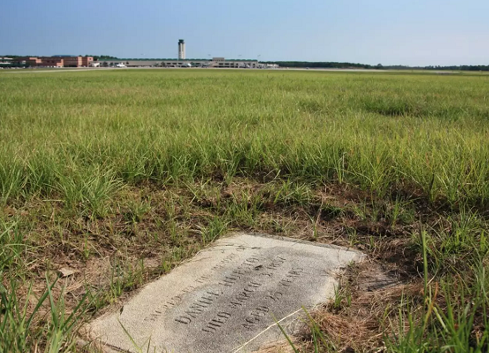 Çifti është varrosur në gjysmën perëndimore të aeroportit, buzë pistës 10 dhe 28, dhe kjo ka ndodhur më shumë se 140 vjet më parë.