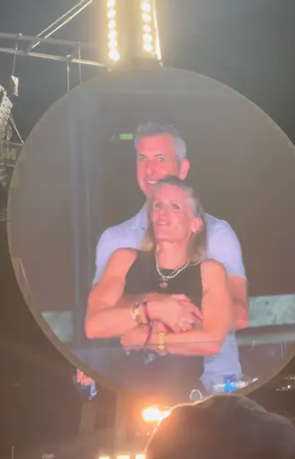 Frontmeni i “Coldplay”, Chris Martin, komentoi me humor situatën në skenë:“Oh, çfarë kemi këtu? Ose kanë një aferë, ose janë shumë të turpshëm”.