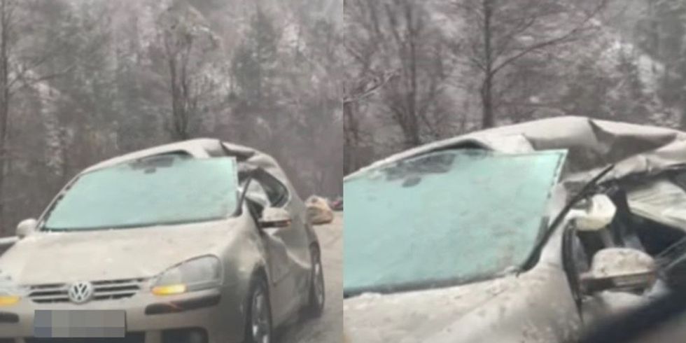 Një aksident ka ndodhur sot në rrugën Pejë-Rugovë në kilometrin e tetë, saktësisht në vendin Kuqishtë, ku një gur i madh ka rrëshqitur dhe ka rënë mbi një veturë që po kalonte në atë zonë.